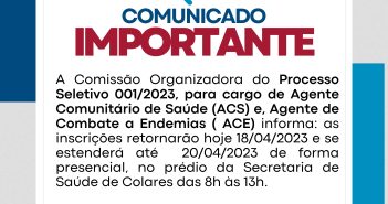 A Comissão Organizadora do Processo Seletivo 001/2023, para cargo de Agente Comunitário de Saúde (ACS)…